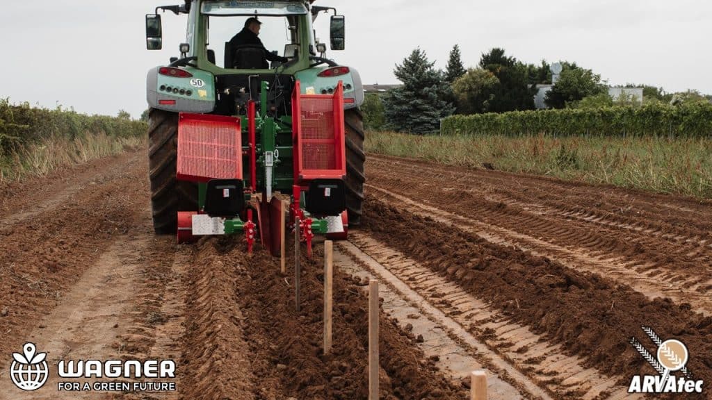 Questa macchina ha la particolarità di poter mettere a dimora la pianta insieme anche al paletto che ha funzione di tutore e di essere gestita tramite una centralina ARVAtec BASICplant ISOBUS!